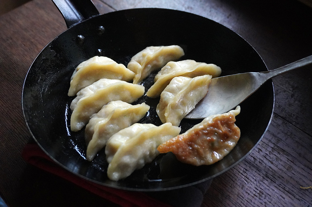 なす味噌炒めの残りを包んだ 餃子。