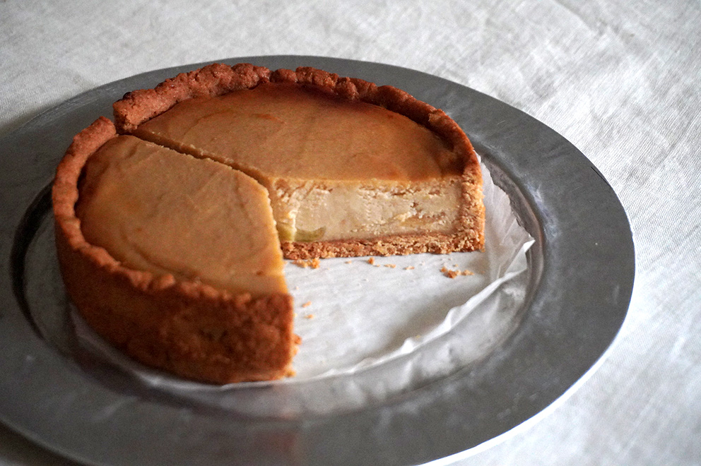 りんごいりチーズケーキ。アルミのリム皿に。